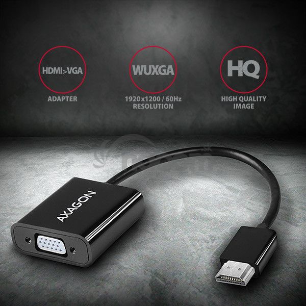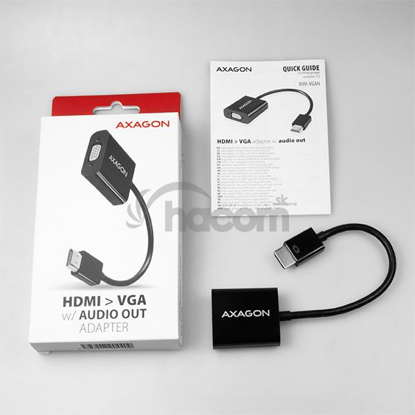 HDMI -> VGA aktívny adapter AXAGON RVH-VGAN s audio výstupom pre pripojenie staršieho VGA monitora / TV / projektora k počítaču alebo inému zariadeniu s výstupom HDMI. Redukciu je možné použiť aj so set-top boxy alebo hernými konzolami Xbox a PlayStation.Hardvérový prevodník bez potreby akejkoľvek inštalácie či nastavovania zaistí prenos obrazu až do rozlíšenia 1920x1200 (WUXGA) pri obnovovacej frekvencii 60Hz. Inovované prevedenie elektroniky adaptéra zaisťuje vysoko kvalitné čistý a ostrý obraz.