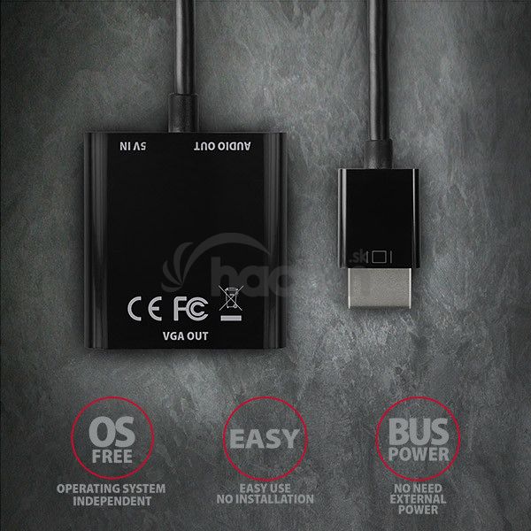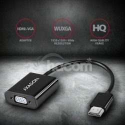 - AXAGON RVH-VGAN, HDMI -> VGA redukcia / adaptér, FullHD, audio výstup, micro USB nap. konektor RVH-VGAN