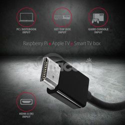 Vďaka vstavanému microUSB konektoru pre dodatočné napájanie možno adaptér pripojiť ik zariadenie sa slabší úrovňou napájanie HDMI výstupu, ako napríklad Raspberry Pi, Apple TV, niektoré Smart TV boxy a ďalšie. Pri pripojení k stolnému PC alebo notebooku dodatočné napájanie nie je potrebné.