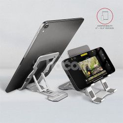 Skladací stojan AXAGON STND-M vám pomôže mať displej vášho telefónu alebo tabletu stále na očiach. Stojan má univerzálne použitie pre zariadenia od 4" až do 10.5" . Prispôsobenie sklonu stojanu podľa vášho priania umožní päť nastaviteľných pozícií , a to pri horizontálnej aj vertikálnej orientácii telefónu / tabletu.Podstavec je vyrobený z kvalitného a pevného hliníka a disponuje protišmykovou úpravou, ktorá zabráni nežiaducim pohybom. Zároveň ochráni povrch vášho zariadenia aj povrch pod stojanom. Tieto vlastnosti zaručia perfektnú stabilitu pre váš smartphone alebo tablet .