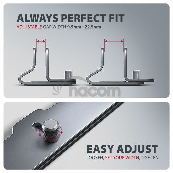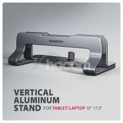 - AXAGON STND-VG, vertikálny hliníkový stojan pre notebooky 10"-17.3, nastaviteľný rozostup, sivý STND-VG