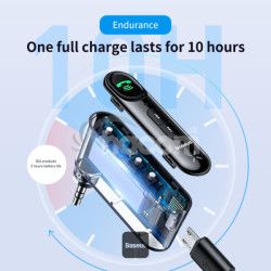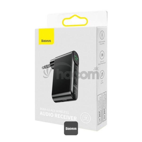 Baseus BSBA-02 Aux Bluetooth audio prijímač pre automobily – bezdrôtové streamovanie hudby, hands-free hovory, doba prehrávania 10 hodín, aptX LL, BT 5.0 – čierna