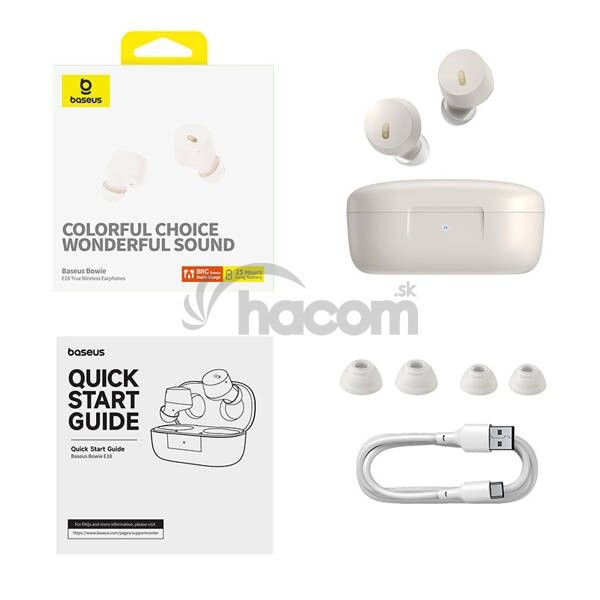 - Baseus Bowie E18 Bezdrôtové Slúchadlá Stellar White 6932172657246