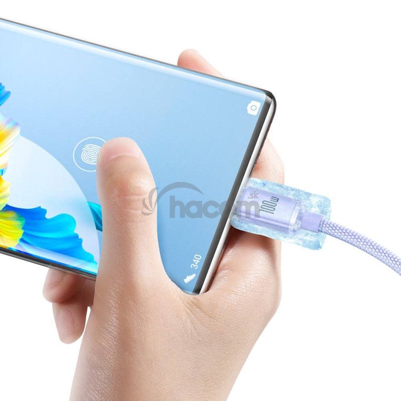 Baseus Crystal Shine Series nabíjací a dátový kábel z USB na USB-C a podporovaným výkonom až 100W