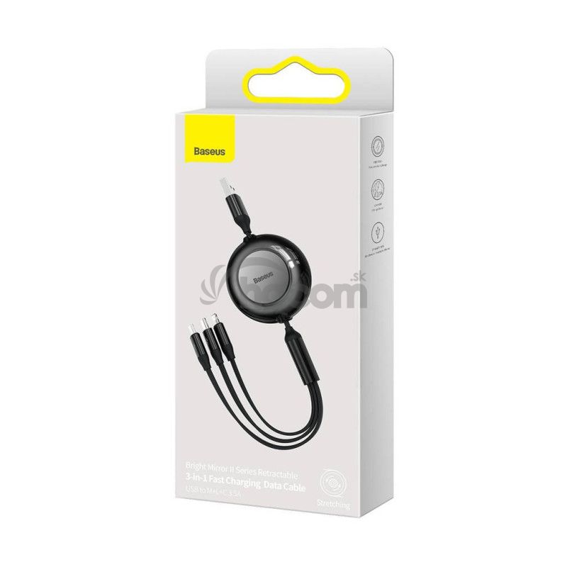 - Baseus CAMJ010001 Bright Mirror Kábel 3v1 MicroUSB/USBC/Lightning 3,5 A 1.1m Black 6932172609030