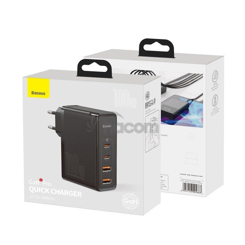 - Baseus CCGAN2P-L01 GaN2 Pro Quick Nabíjačka 2xUSB + 2xUSB-C 100W Black 6953156204683