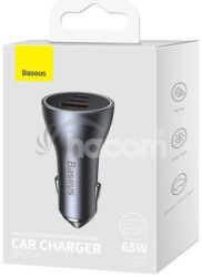 - Baseus CGJP010013 Nabíjačka do Autá Triple Quick Charger USB/USB-C/USB-C 65W Dark Grey 6932172610289