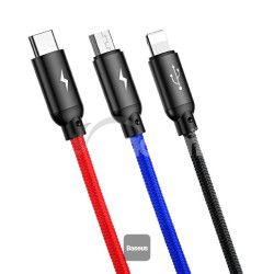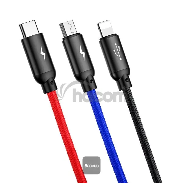 Baseus 3 in 1 Cable 3 Primary Colors Type C, Lightning, Micro 3A 1.2M