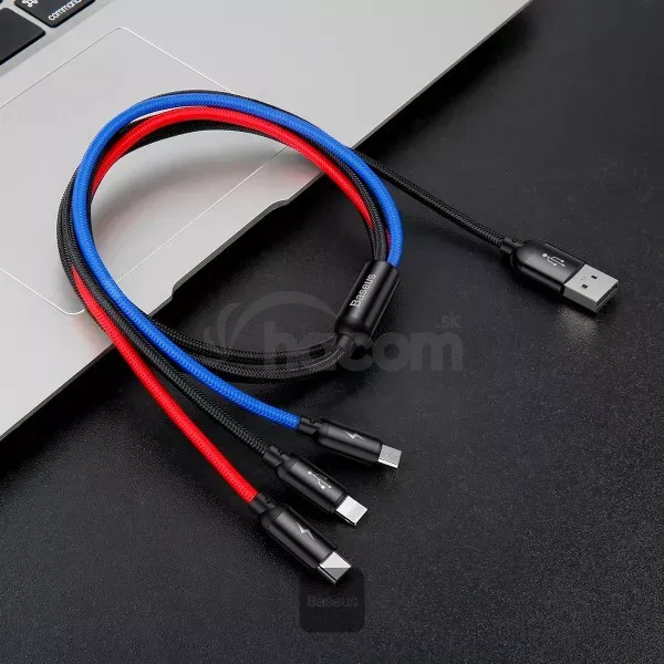 - Baseus dátový kábel 3v1 microUSB+Lightning+USB-C 1,2m 3,5A 6953156273948