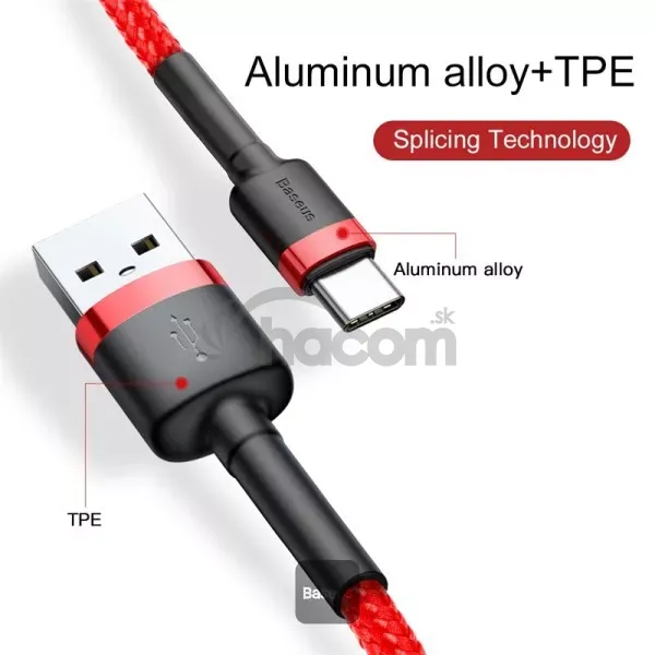 - Baseus dátový kábel Cafule USB-C 2m 2A červený 6953156278226