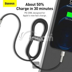 - Baseus dátový kábel Cafule USB-C/Lightning 1m PD 20W čierny 6953156202061