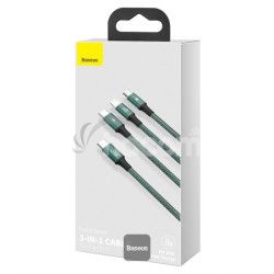 Baseus dátový kábel Rapid 3v1 USB-C/microUSB, Lightning, USB-C 1,5m PD 20W zelený 6953156204300
