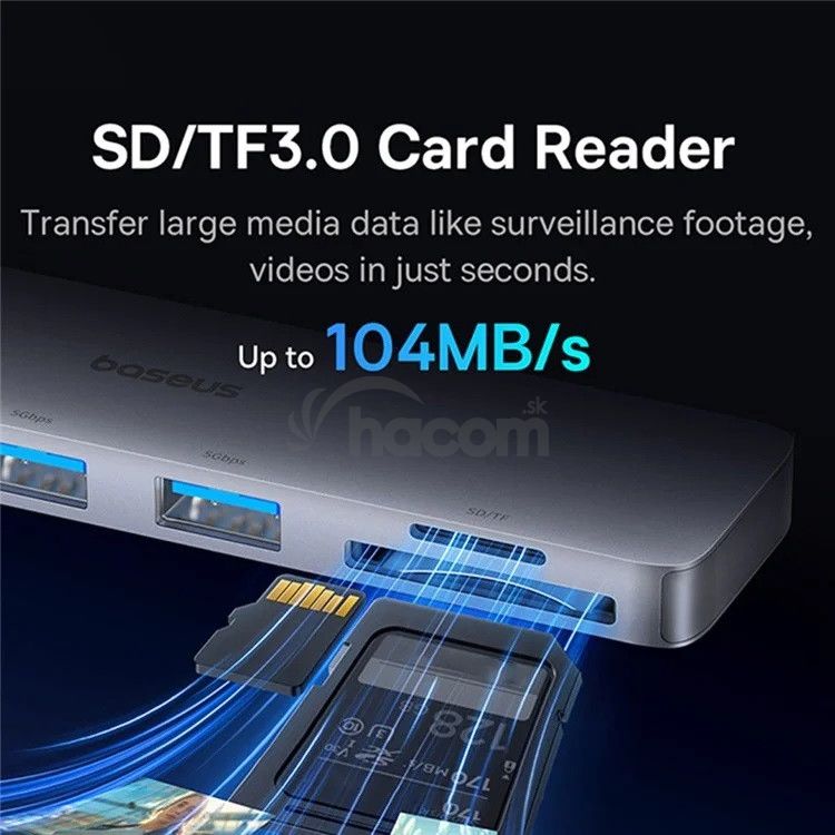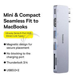 - Baseus Dokovacia stanica Ultra Joy 6v1 (USB-C PD, 2xUSB 3.0, HDMI, SD/TF) sivá 6932172657697