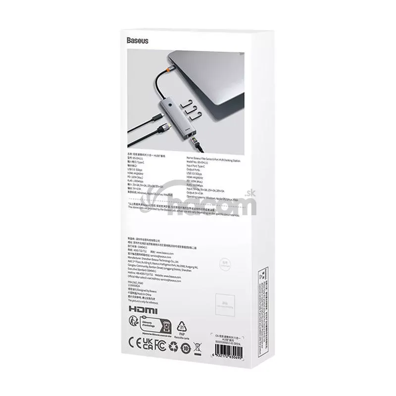 - Baseus húb Ultra Joy USB 6v1 (USB-C/1xHDMI4K30Hz/3xUSB 3.0/1xPD/RJ45) sivý 6932172630713