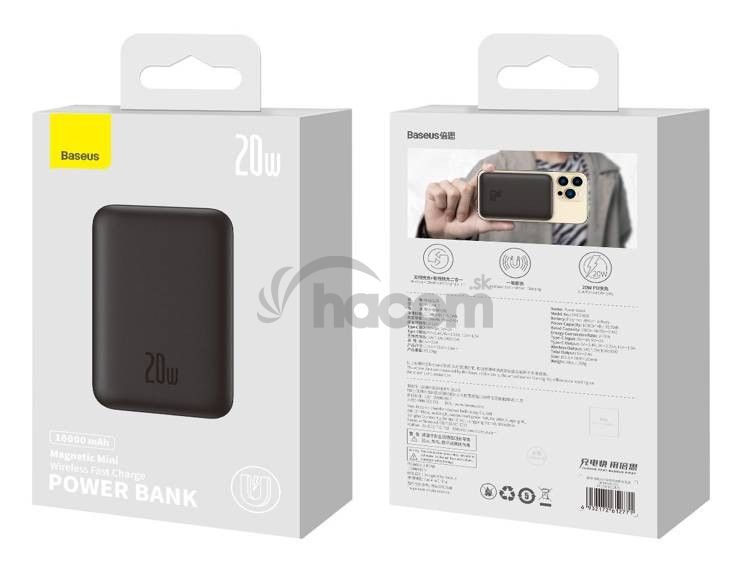 Baseus Magnetic Mini | Power Bank 10000mAh 20W s bezdrôtovým nabíjaním MagSafe Overseas EditionKompaktná power banka s kapacitou 10000 mAh a výkonom 20 W. Je vybavený vstupným/výstupným portom USB-C. Inteligentné obvody automaticky volia parametre prúdu podľa nabíjaného zariadenia.
