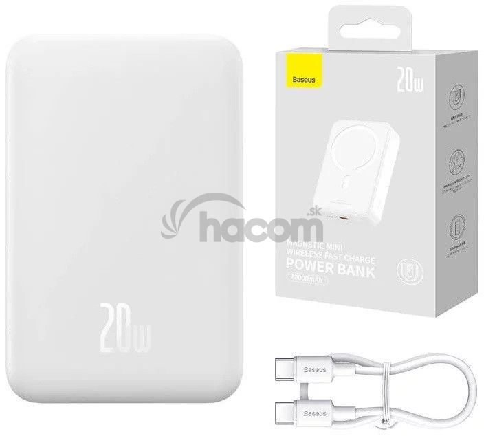 - Baseus Magnetická Powerbanka 20000mAh 20W White 6932172628796