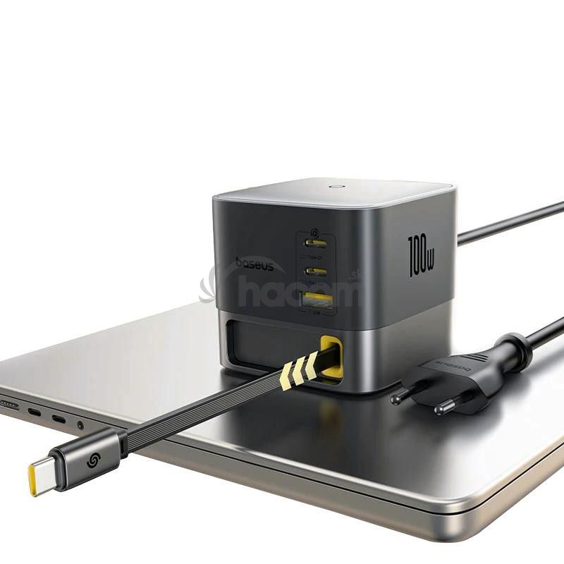 - Baseus Nabíjacia stanica Super GaN Charger 100W, 3x USB-C, USB-A 1m kábel čierna 6932172668938
