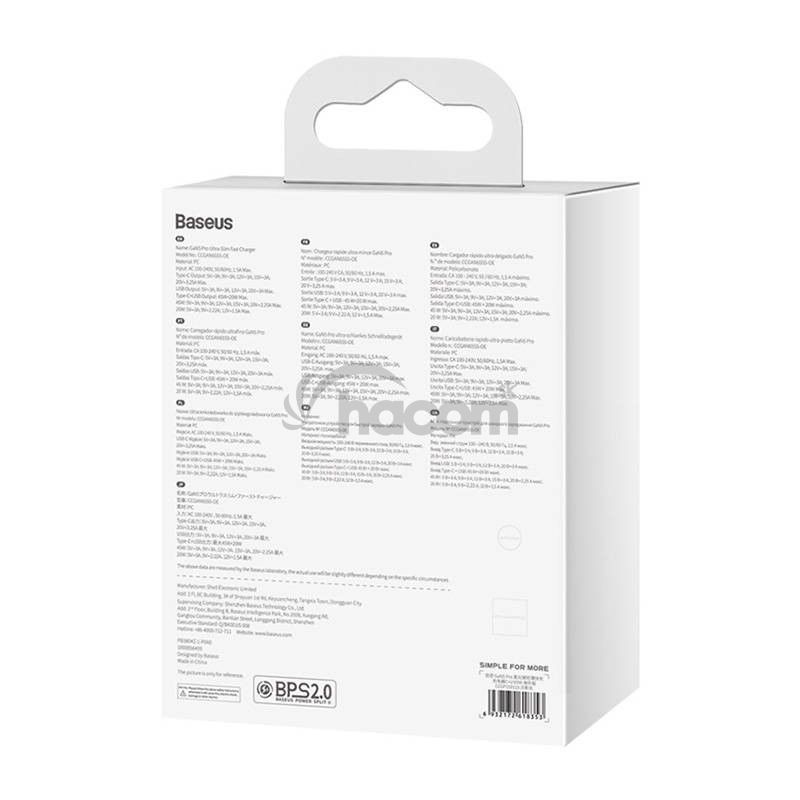 Baseus GaN5 Pro Ultra Slim 65W sieťová rýchlonabíjačka