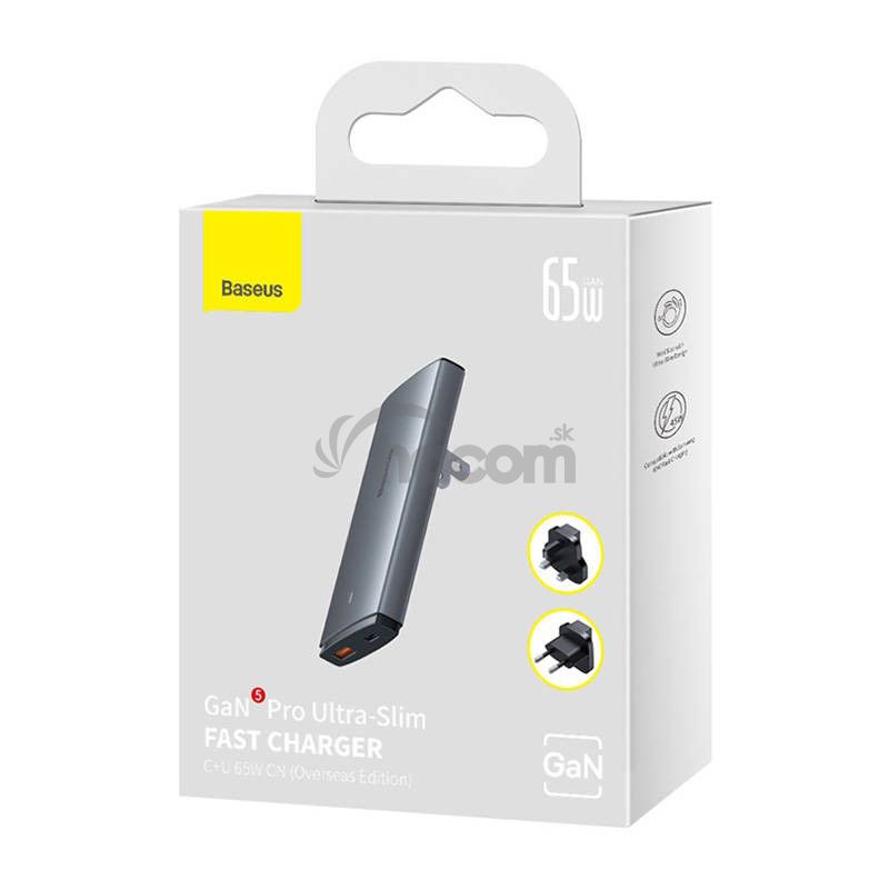 - Baseus Nabíjačka do siete GaN5 Pro Ultra Slim USB-C/USB-A 65 W sivá 6932172618353