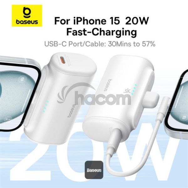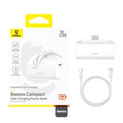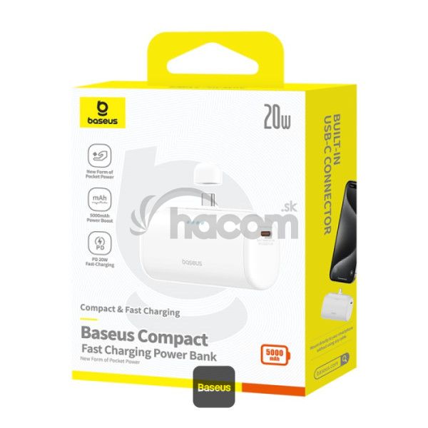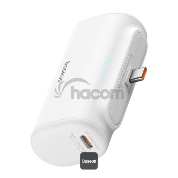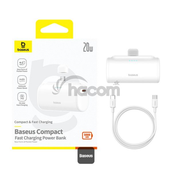 Baseus Compact Series 5000mAh rýchlonabíjacia power banka 20W PD so vstavaným konektorom Type-C | Vreckový power banka na cesty - biela