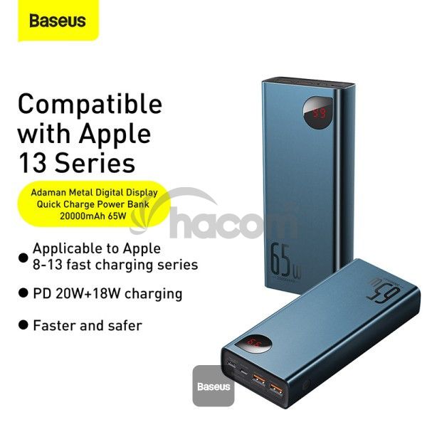 - Baseus Powerbanka Adaman Metal 20000mAh 65W modrá 6953156204331