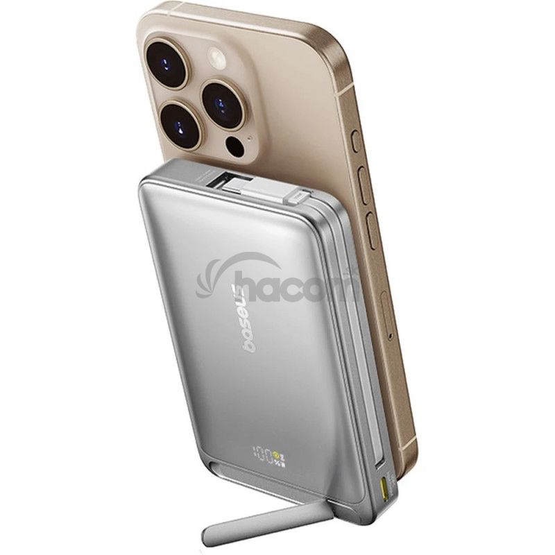 BASEUS Nomos Qi2 Power Bank 10000mAh 45W rýchlo nabíjacia káblová bezdrôtová nabíjačka USB-C so stojanom – šedá* Vyskúšajte ultra rýchle 15W bezdrôtové nabíjanie s certifikáciou Qi2, ktoré zaisťuje optimálnu účinnosť nabíjania a kompatibilitu