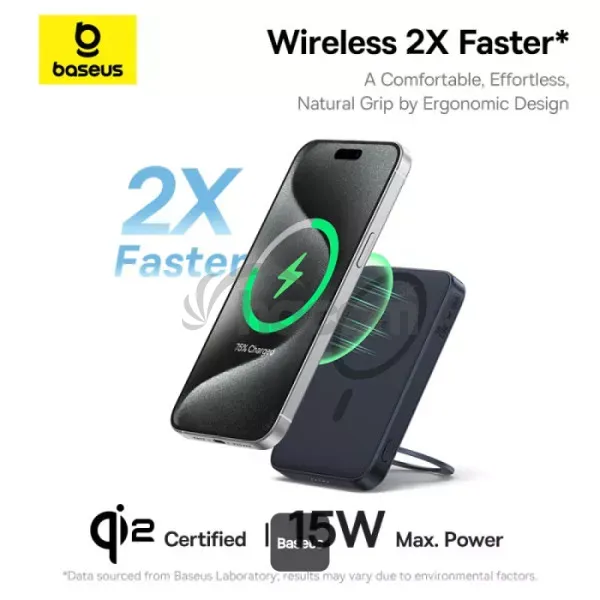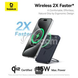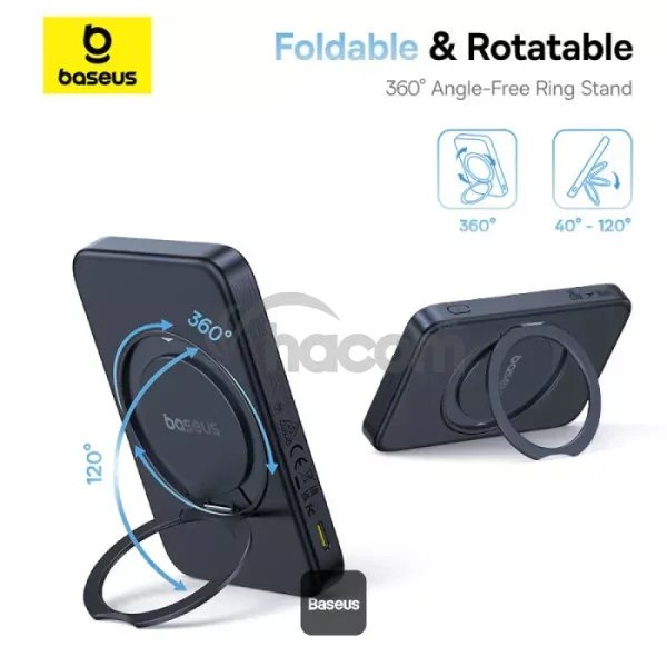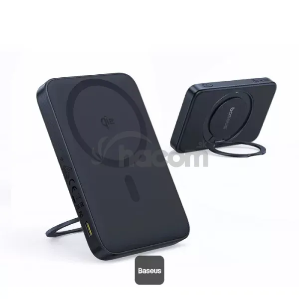- Baseus Powerbanka PicoGo Qi2 s otočným stojanom a bezdrôtovým nabíjaním 5000mAh 20W USB-C čierna 6932172677619
