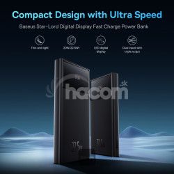 Baseus Star-Lord Digital Display Fast Charge power banka 10000mAh 22,5W čierna, s jednoduchým sériovým nabíjacím káblom USB to Type-C 3A 0,3m čierny*10000mAh / 20000mAh/ 30000mAh K dispozícii