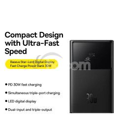 BASEUS Star-Lord Digital Display Fast Charging Power Bank 10000mAh 30W prenosná nabíjačka telefónu - čierna*Rýchle nabíjanie 30W PD: Kompatibilné s vysokonapäťovým rýchlym nabíjaním Huawei 10V/2,25A 22,5W a je certifikované protokolmi rýchleho nabíjania QC, PD, SCP, FCP, AFC a ďalšími, rýchle nabíjanie pre Xiaoy, pre Samsung
