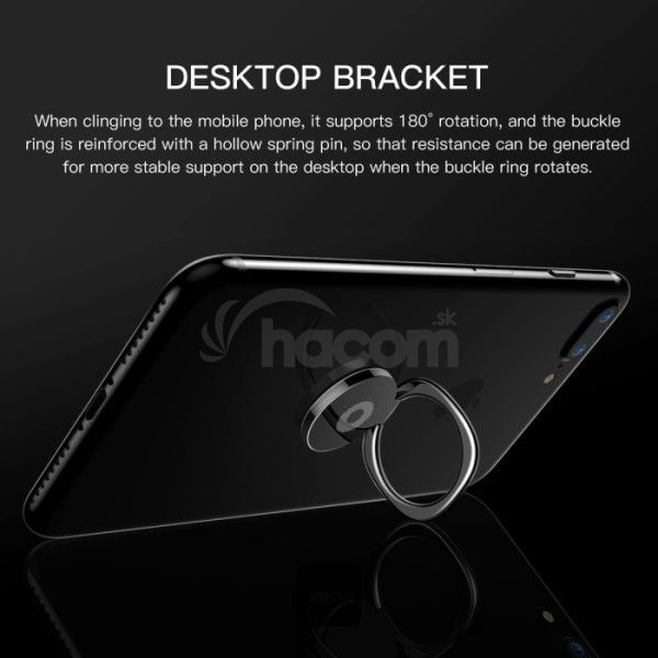 Nastaviteľný držiak a stojan na telefón otočný o 360 stupňovBaseus Phone Ring Holder je vysoko kvalitné, odolné telefónne príslušenstvo vyrobené zo zliatiny zinku a nerezovej ocele. Ponúka 360 ° otočnosť a 180 ° nastaviteľnosť, vďaka čomu je univerzálna pre akýkoľvek uhol pohľadu. Vyznačuje sa silnou priľnavosťou a kompatibilitou s magnetickými držiakmi do auta.