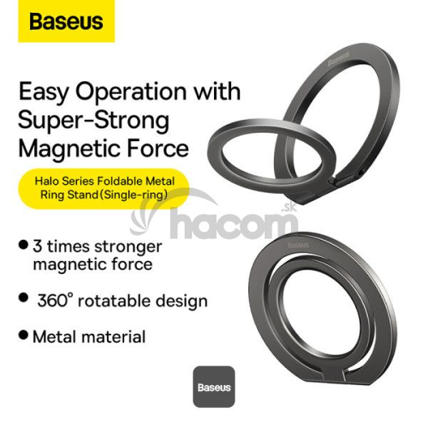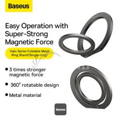 - Baseus univerzálny magnetický držiak Halo kovový krúžok sivý 6932172616960