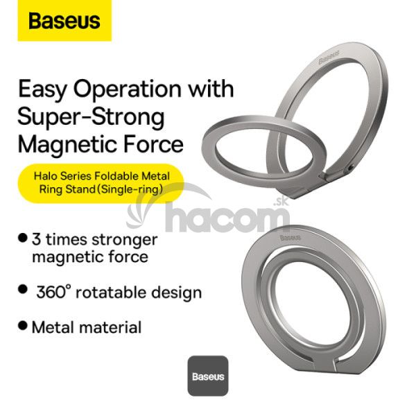 - Baseus univerzálny magnetický držiak Halo kovový krúžok strieborný 6932172616977