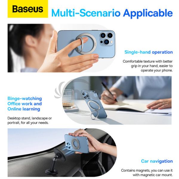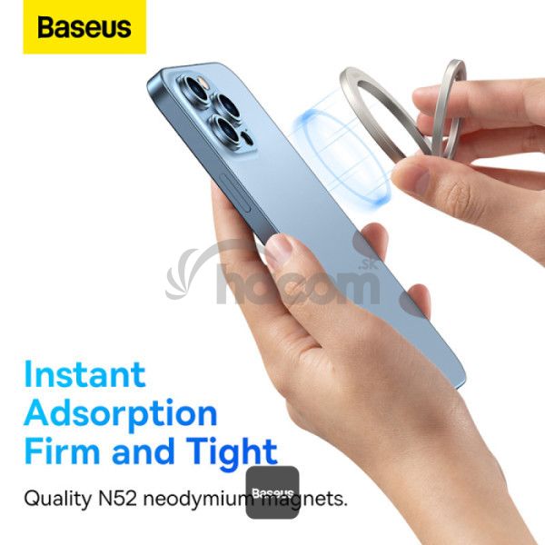 Magnetický (MagSafe) krúžok s prstienkomUniverzálne príslušenstvo známej a uznávanej značky Baseus sa bude hodiť každému užívateľovi smartfónu, ktorý má MagSafe. Ľahký a kompaktný magnetický držiak umožňuje pohodlné používanie zariadenia za všetkých podmienok – stačí držiak rozložiť.