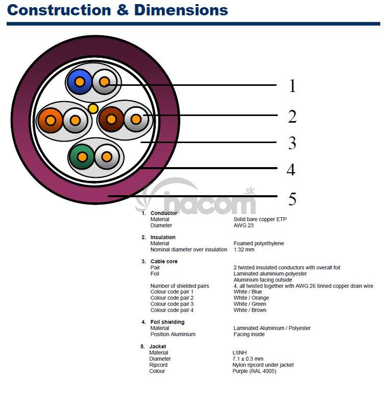 BELDEN F / FTP Cat.6A LSOH, plášť fialovýInštalačný kábel 10GXE01 kategórie 6a určený pre rozvody štruktúrovanej kabeláže. Vďaka tienenému prevedenie kábla je vhodný pre umiestnenie do náročnejšieho vnútorného prostredia.