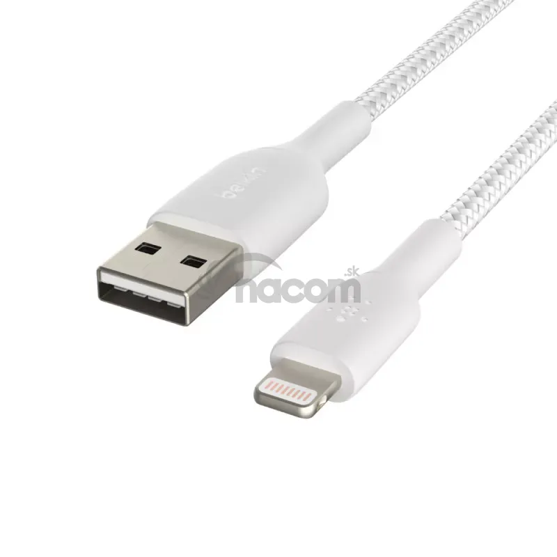 - BELKIN kabel oplietané USB-A - Lightning, 2m, biely CAA002bt2MWH