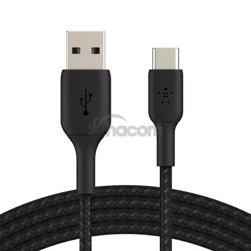 - BELKIN kabel oplietané USB-C - USB-A, 1m, čierny CAB002bt1MBK