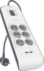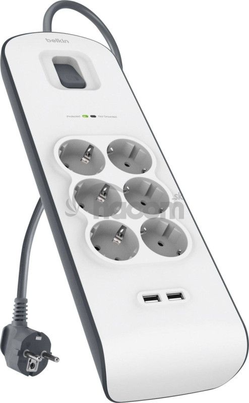Slúži ako ochrana proti následkom náhleho kolísania napätia v sieti. 6 zásuviek poskytne vynikajúcu ochranu pred prepätím pre laptopy, tlačiarne, externé pevné disky a ďalšie ťažko nahraditeľné zariadenia. Dva praktické konektory USB (2,4 A) slúžia tiež na nabíjanie zariadenia cez zdroj. Stačí iba pripojiť prepäťovú ochranu k elektrickej zásuvke doma alebo v kancelárii. Zelená svetelná kontrolka vám ukáže, či prepäťová ochrana funguje. Vďaka modernému dizajnu, kvalitnej konštrukcii a tiež prvotriednym obvodom a súčiastkam, ktoré Belkin použil, môže zabrániť poškodeniu a strate dát, poškodeniu súborov alebo kolapsu systému.*2x USB