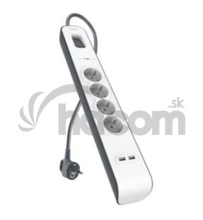 Vlastnosti produktu:* 4 zásuvky s prepäťovou ochranou + 2 univerzálny porty USB 2.4A (zdieľané)