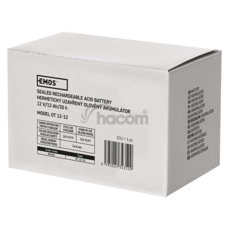 Bezúdržbový olovený akumulátor 12 V/12 Ah, faston 6,3 mm B9656