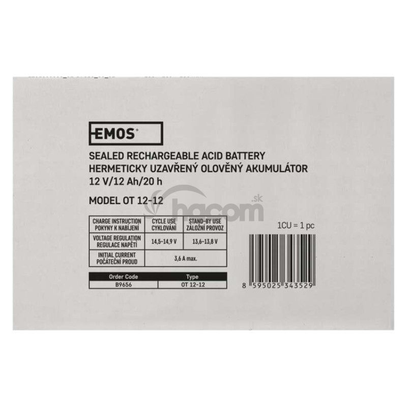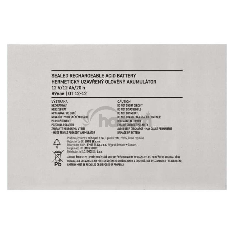 - Bezúdržbový olovený akumulátor 12 V/12 Ah, faston 6,3 mm B9656