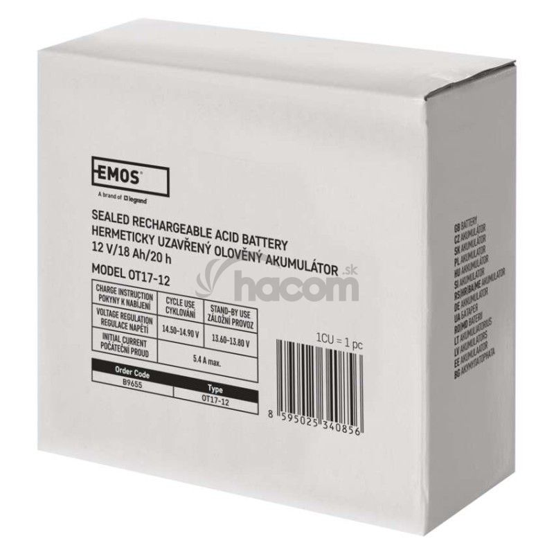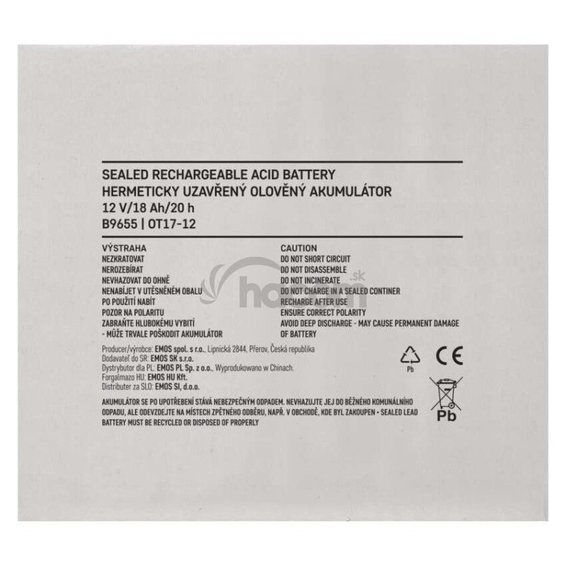- Bezúdržbový olovený akumulátor 12 V/18 Ah B9655