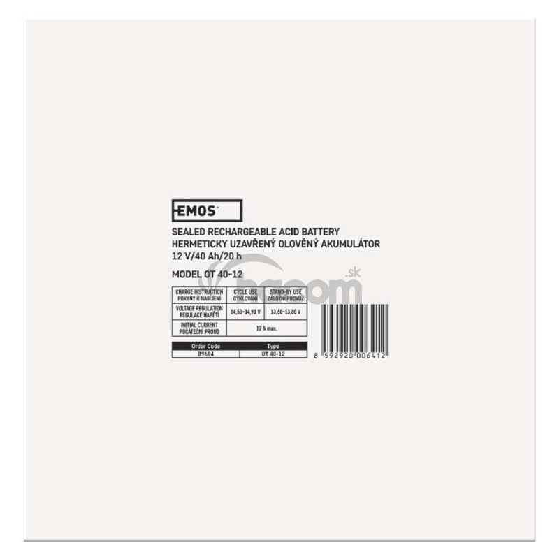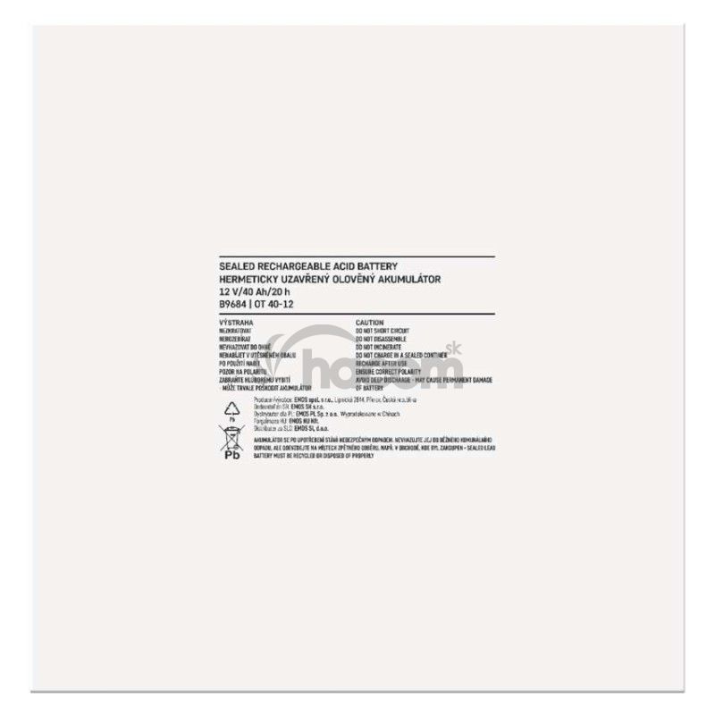- Bezúdržbový olovený akumulátor 12 V/40 Ah M6 B9684