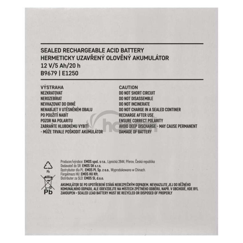 - Bezúdržbový olovený akumulátor 12 V/5Ah, faston 6,3 mm B9679