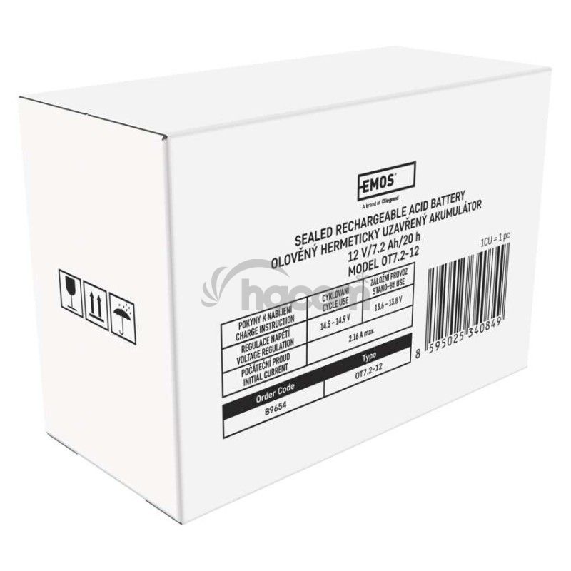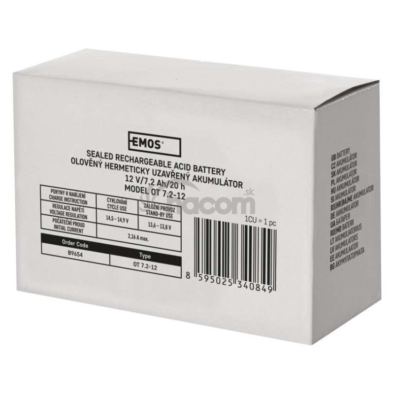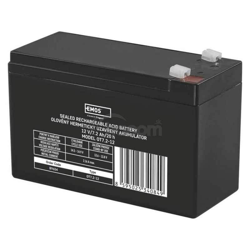- Bezúdržbový olovený akumulátor 12 V/7,2 Ah, faston 4,7 mm B9654