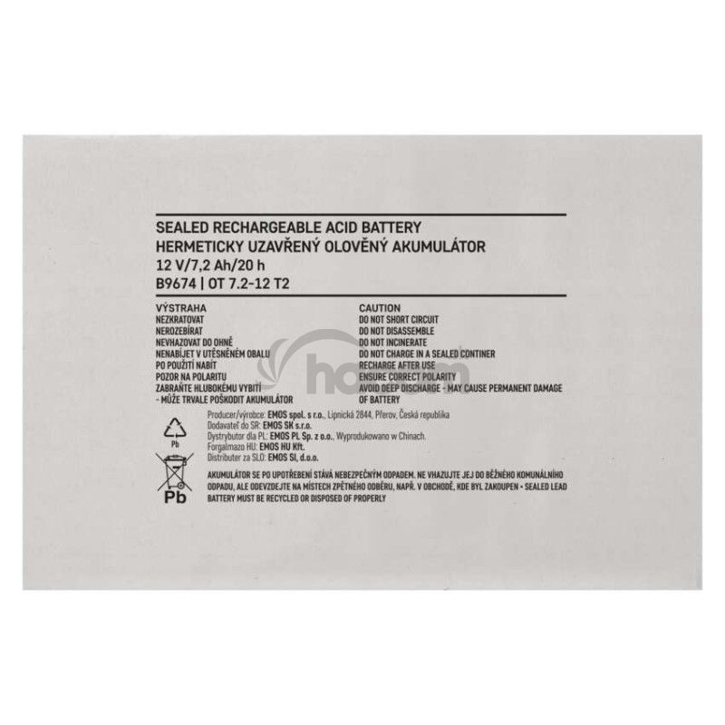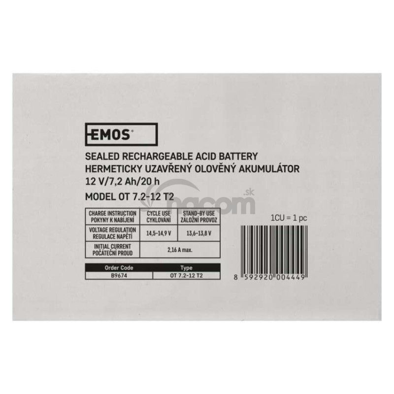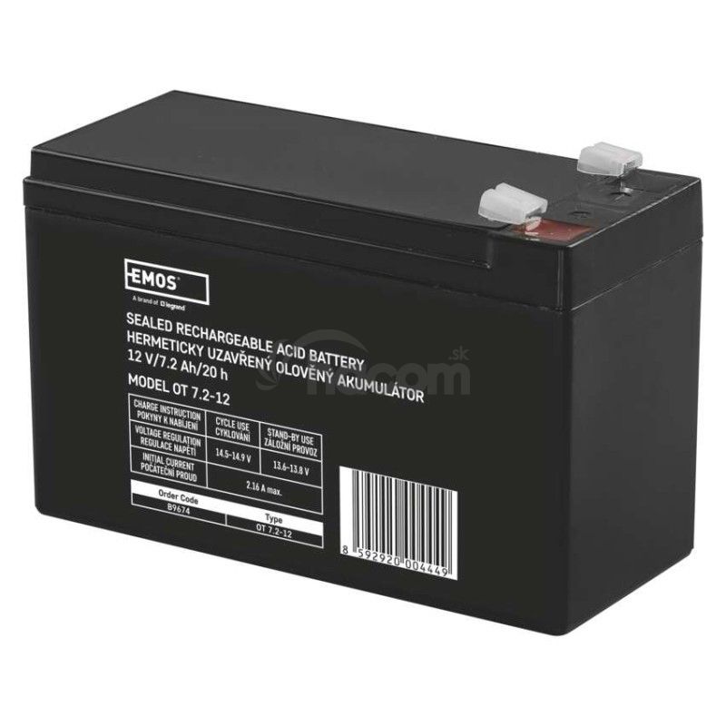 - Bezúdržbový olovený akumulátor 12 V/7,2 Ah, faston 6,3 mm B9674