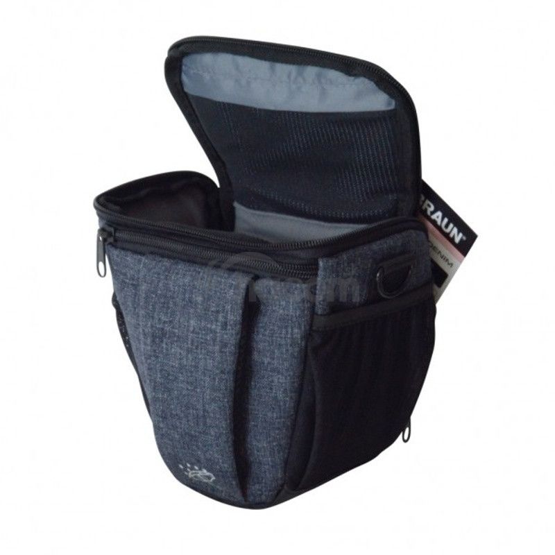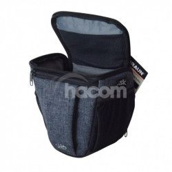 Fototaška ALPE ZOOM Denim - vnútorné rozmery 15,5 x9x17 cm, hmotnosť 310g. Modrý štruktúrovaný materiál pripomínajúci rifľovinu pre zrkadlovku s príslušenstvom. Praktické robustné prevedenie s otváraním hlavného priestoru tašky od tela nositeľa (ochrana proti odcudzeniu). Predné členité vrecko so zipsom - po odlklopení oddelené priestory na akumulátor, kartu a ešte jeden uzavretý. Bezpečné zadné vrecko so zipsom napríklad na dokumenty. Bočné sieťové vrecká na rýchle ukladanie predmetov. Svetlosivý interiér pre ľahký prehľad o obsahu. Koženkové prvky v dizajne a na možných dotykových plochách s vlkom. Prepracované polstrované ucho, popruh cez rameno s kovovými prackami a zadné pútko za opasok. Integrovaná pláštenka pre ešte vyššiu odolnosť voči vode.