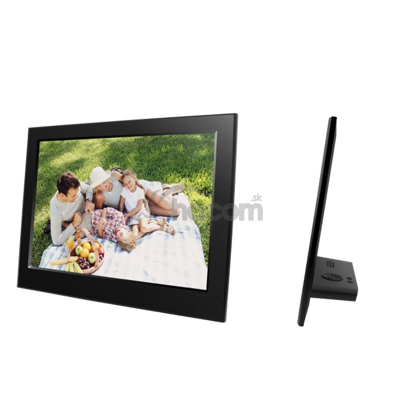 Digitálny fotorámik s uhlopriečkou 10", ultratenký 6,5 mm s opierkou, vysoké rozlíšenie 1024x600px, 16:9, prezeranie obrázkov vo formáte JPEG, počúvanie hudby MP3/WMA a prehrávanie videa Full HD MPEG1/2/4, multislot SD/MS a USB2 flash max 32GB, Audio out, Auto Start/ON/OFF, funkcie: SlideShow (prezentácia), náhľady, zoom a otáčanie obrázkov, budík, hodiny, kalendár Rozmer: 220x176x23 mm, hmotnosť 480 g. Súčasťou dodávky sieťový zdroj AC/ DC 5V/1,5A, diaľkové ovládanie.