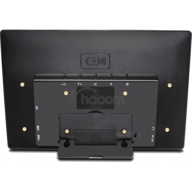 Veľmi kvalitný digitálny fotorámik s uhlopriečkou 7", rozlíšenie 1024x600px, 16:9 LED s čidlom pohybu pre zapnutie, prehrávanie JPEG/MP3/Video, 4GB interná paneť, USB/AV out/SDHC slot, Stereo 2x2W reproduktory, IR diaľkový ovládač, čer VESA 50x75mm na stenu, opierka na stôl, jednoduchá obsluha a nastavenie, možnosť horizontálnej i vertikálnej prevádzky, Kensington zámok proti krádeži.Ideálne pre POS vďaka vysokej kvalite obrazu a automatickému vypnutiu, pokiaľ nie je nikto v blízkosti.Rozmery 180x128x23g, hmotnosť zdroj 5V/1,5A.