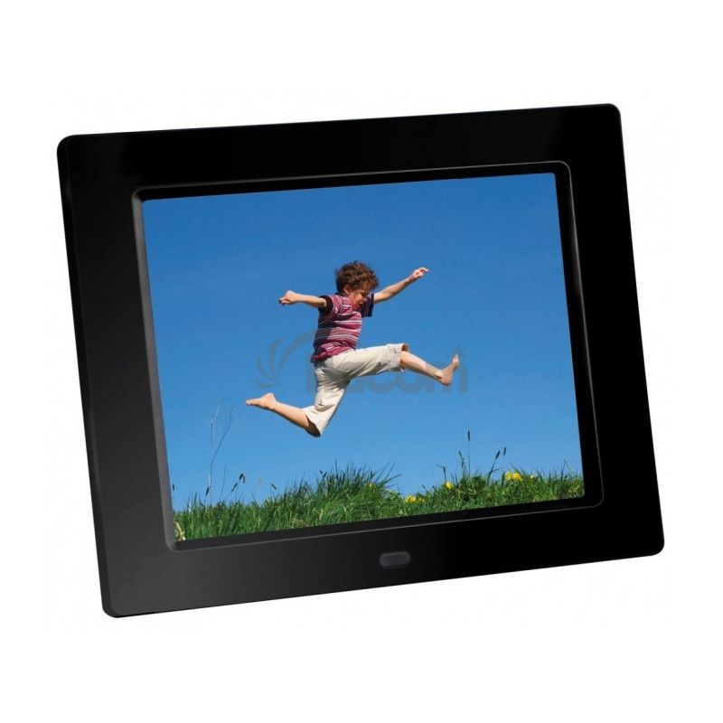 Digitálny fotorámik s uhlopriečkou 8", LED backlight, rozlíšenie 1024x768px, pomer 4:3, prezeranie obrázkov JPEG, počúvanie hudby MP3 a prehrávanie videa HD 720p, multislot SDHC/MS, USB2 pre FlashStick, mini USB2, Audio out, IR diaľkový ovládač, farba: čierna Auto Start, OSD menu, SlideShow, Zoom, otáčanie obrázkov, kontrast/ svetelnosť/ farebnosť, budík, hodiny, kalendár TFT LCD, uhlopriečka 20,3 cm, svetelnosť 300 cd/m2, kontrast 300:1. : JPEG, MBP, GIF, TIP, PNG - Video: MPEG 1/2/4 (Divx4.0/5.0, Xvid), AVI, M-JPEG, MKV, WMV, ASF, MOV, MP4, H.264, 3GP - Audio: MP3, WMA, OGG, AAC, APE, FLAC, WAV.Možnosť uchytenia na stenu alebo našrobování stojančeka, výstup slúchadla, sieťový zdroj AC/DC 5V/1,5A, rozmer: 220x176x23 mm, hmotnosť 440 g.