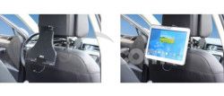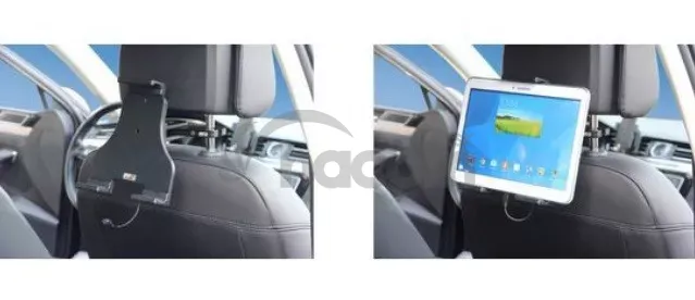 Nastaviteľný držiak na tablet je určený pre tablet v puzdre aj bez puzdra a má nabíjanie skryté v palubnej doske.Držiak je veľmi pevný, tabliet sa v ňom neklope a nevibruje. Držiak má kĺb, vďaka ktorému môže byť tablet kedykoľvek jednoducho natočený na šírku alebo na výšku alebo naklopený. Držiak sa upevňuje na Brodit konzolu na hlavovú opierku.